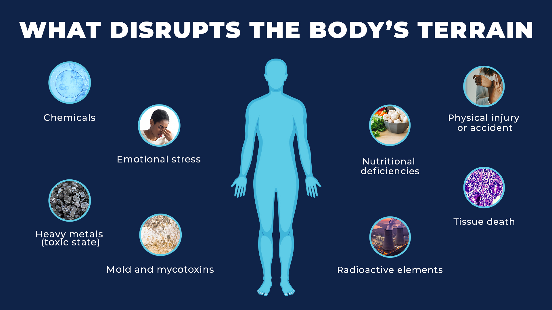 Toxins disrupt the body’s terrain and cause many health issues. From this picture, you can see that toxins come in many forms.
